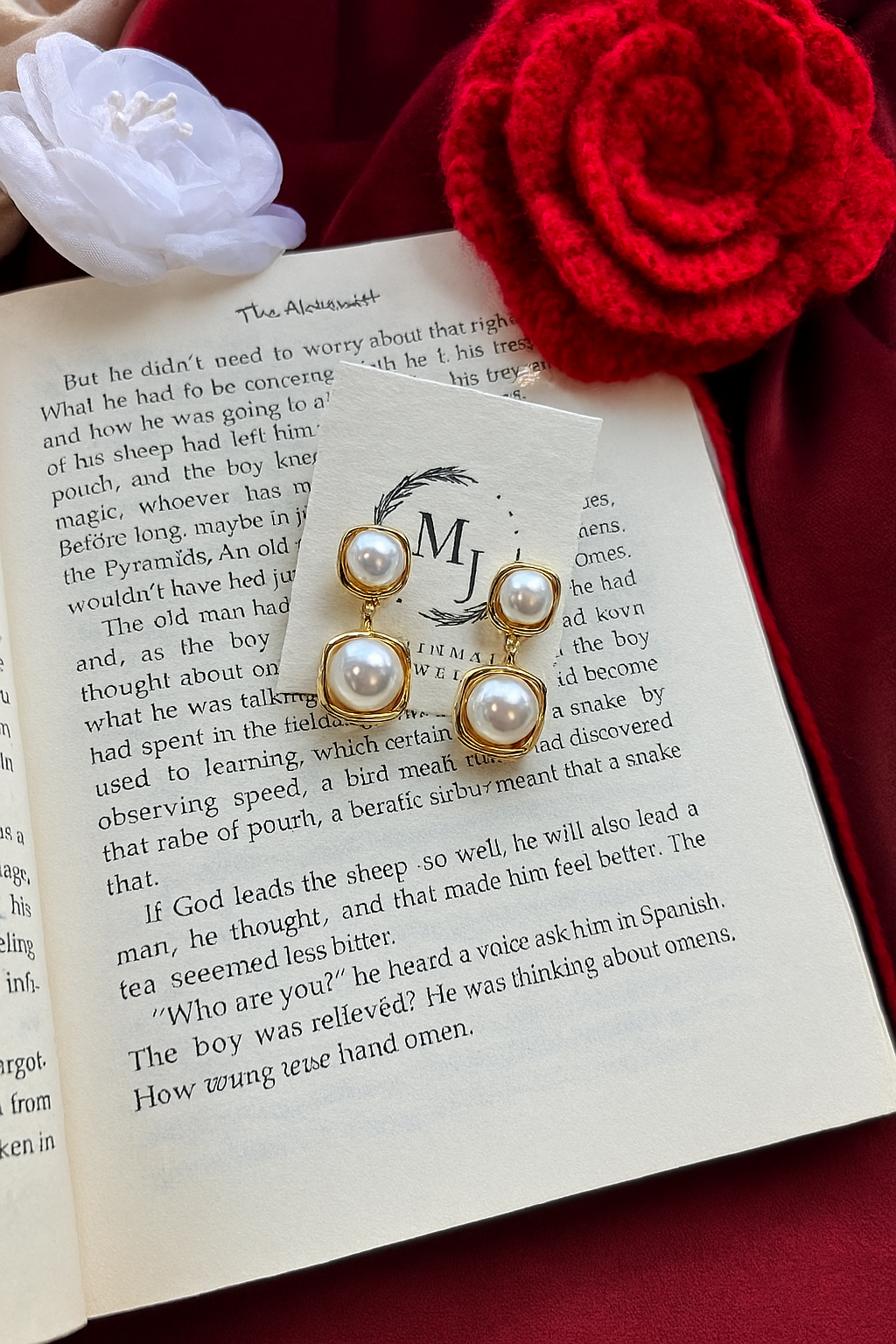Grace meets sophistication with our Classic Dual Pearl Studs in a polished finish. These earrings feature two elegant pearls elegantly framed in a soft square silhouette, giving you a refined yet modern appeal. Ideal for both festive and formal looks, this piece speaks of understated luxury.