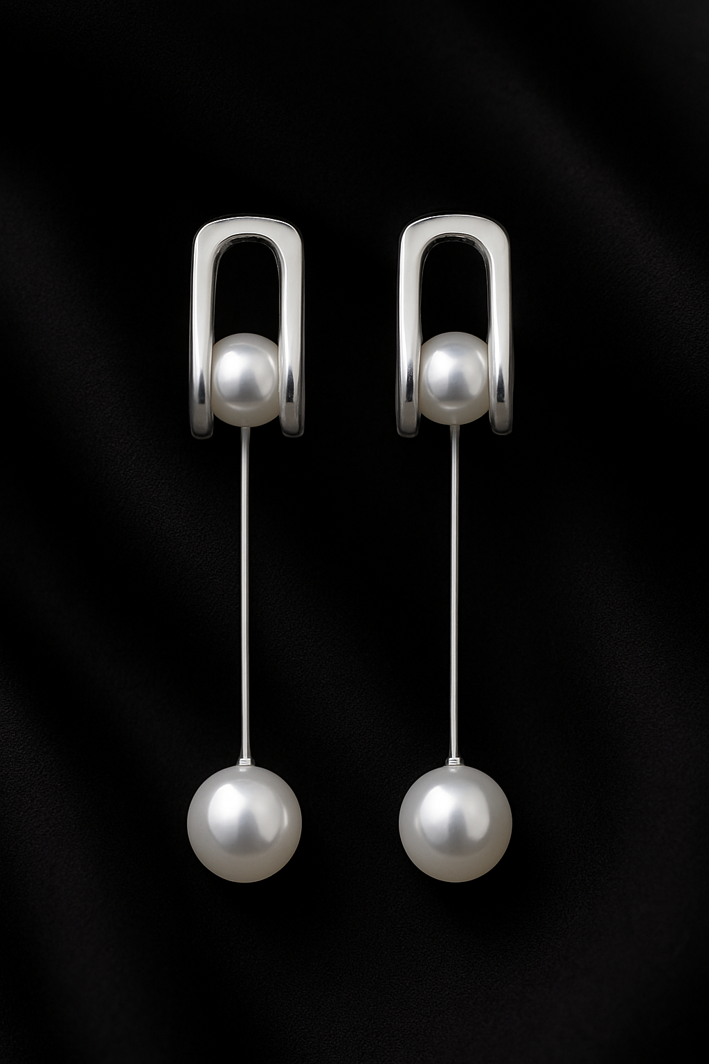 Minimalist yet striking, the Silver Orbit Drop Pearl Earrings redefine elegance with their sculptural silhouette. Crafted in a sleek silver finish, these earrings feature a rectangular metallic frame delicately cradling a lustrous pearl, with a second pearl suspended below on a slender rod for graceful movement. The linear design and high-shine polish make them perfect for both modern daywear and refined evening looks. Lightweight, statement-worthy, and timeless in appeal.